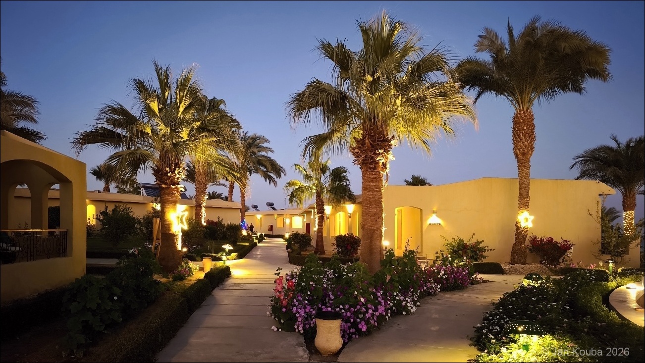 Hotelový resort – na poslední 4 dny naší cesty po Egyptě jsme se přesunuli do resortu https://threecorners.com/red-sea/fayrouz-plaza-beach-resort/ (je levnější rezervovat přímo, než přes Booking), který je od Port Ghalibu vzdálený asi 5 km po silnici. Zaplatili jsme 15 USD za taxi, které museli zavolat z hotelu, protože Uber neměl žádné auto v okolí k dispozici. Tento resort all-inclusive jsem zvolila jednak podle recenzí, korálovému útesu a také podle vzdálenosti od letiště Marsa Alam, které je jen 7 km. Volba to byla skvělá, krásné ubytování v nízkých bungalovech v zahradě, výborné jídlo i servis. Velkým bonusem je molo přímo ke korálovému útesu, které je 360 metrů dlouhé a útes nabízí úžasné šnorchlování nebo potápění. Z resortu se dostanete asi 20 minutovou procházkou po pobřeží na pláž Marsa Mubarak, kde spolehlivě uvidíte mořské želvy. Zátoka Marsa Mubarak sice slibuje i výskyt dugongů (mořské krávy), ale s tím, že je uvidíte, nepočítejte. Každý den míří do zátoky velké množství výletních lodí s turisty a tato plachá zvířata, která nemají rády hluk odplují. Jinak kromě želv nic jiného neuvidíte, žádné korály ani rybičky, jen písečné dno. Pobyt v resortu na 4 dny byl pro nás tak akorát, jednak z úsporných finančních důvodů a potom ani jeden z nás není resortový ani plážový typ.